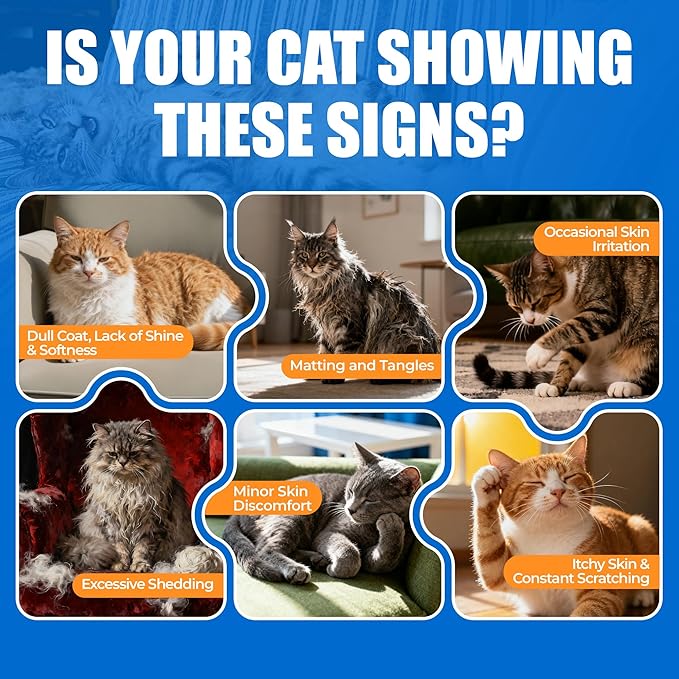 - Cat Skin & Coat Support: As an natural solution for dull fur and dry skin, this cat fish oil for cats promotes a shiny coat and soothes skin irritations. By delivering essential omega-3 for cats, this cat essentials helps supports healthy skin, better than fish oil liquid.