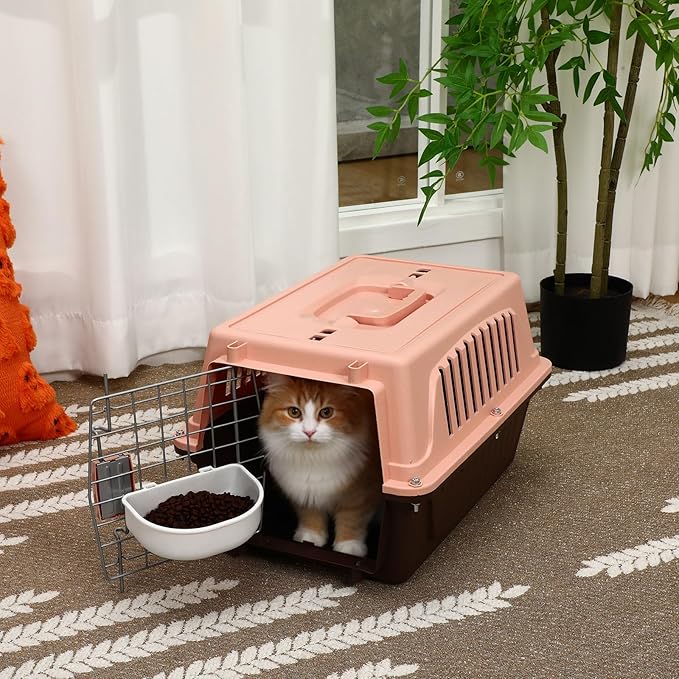 - Provide Pet Comfort: pet's travel comfort with our hard shell plastic kennel, featuring a sturdy wire door and built in cooling pad, ideal for long car rides, vet appointments, or outdoor adventures; The fully breathable design ensures your furry friend stays cool and secure, while the lightweight yet durable construction makes it easy to transport for hiking, camping, or flights