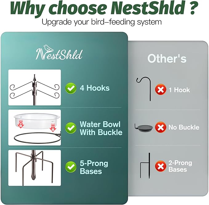 - Versatile Design: The metal bird feeding pole has 2 top hooks and 2 middle hooks, you can hang any decors and bird feeding accessories, which can attract a variety of wild birds.Bird feeder and bird seed not included.