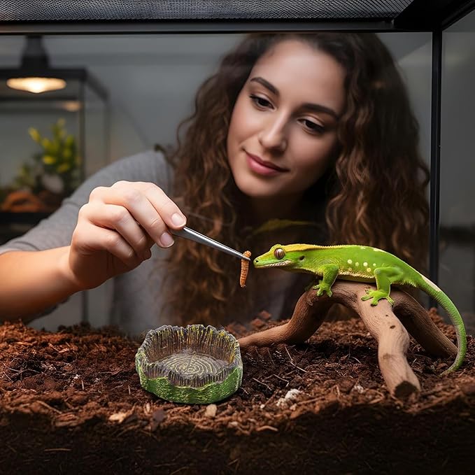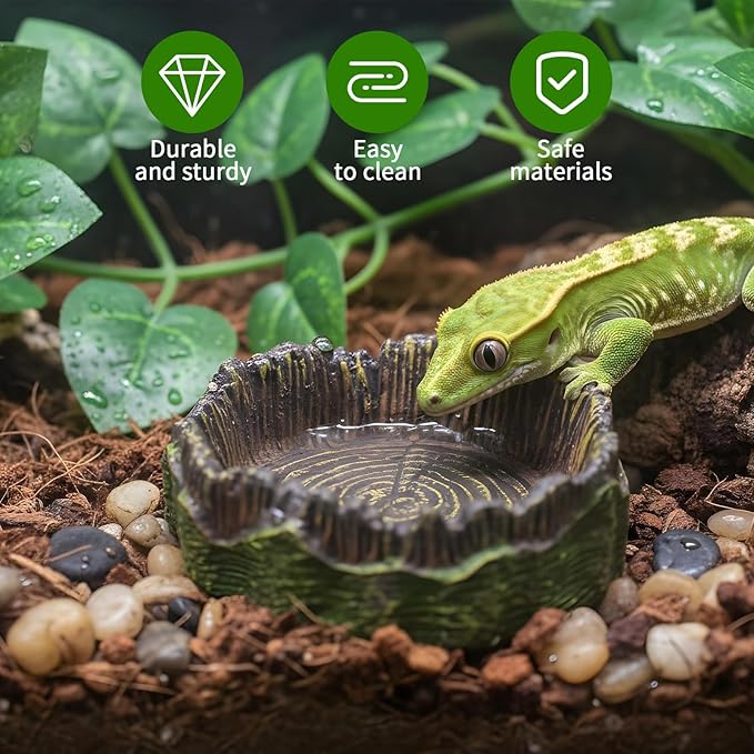 - Realistic Design: The bearded dragon food bowls are designed to perfectly reflect reptiles' natural needs. The design mimics the look of a natural tree stump, giving each dish a unique, natural aesthetic. Reptiles naturally love to climb, and this stump-shaped design not only provides a drinking function but also adds an interesting touch to their habitat