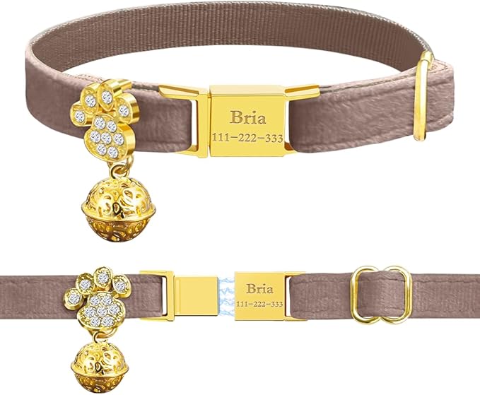 Personalized Breakaway Cat Collars - Magnetic Buckle, Bell - Safety Quick Release, Customized for Girls & Boys Cats- (Velvet-Chocolate)