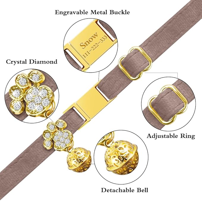 - High Quality Material--Sturdy Nylon with a Soft Lint Outer Layer for Long Wear; Hand-Stitched for Flexibility & All-Day Comfort. Includes Adjustable Ring for Custom Fit and Detachable Bell—Plus Shiny Diamond-Claw Decorations for an Eye-Catching, Adorable Look.