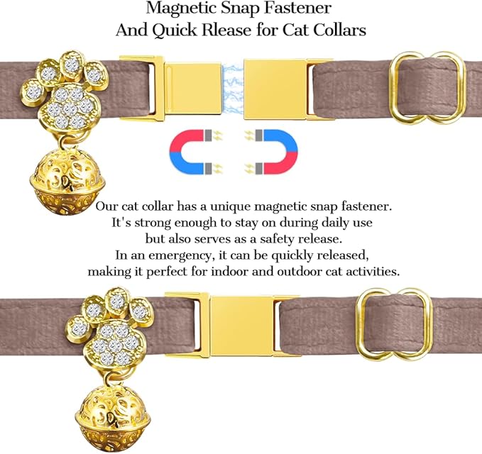 - Magnetic Safety Buckle--Innovative Blend of Safety & Convenience. Our Cat Collar Features an Innovative Magnetic Safety Buckle: 1-Second Quick Release for Emergency Snag-Rescue (Avoids Choking), One-Handed On/Off for Daily Ease, and Secure Hold During Play – Safe for Cats, Effortless for You.