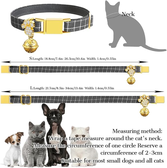 - 2 Adjustable Sizes for Cats & Small Dogs--S: 7.4''-10.4'' and L: 8.5''-13.4''. For Perfect Fit, Please Measure Your Pet's Neck or Current Collar Before Ordering. Manual Measurement Exists 0.5"-1" Error.