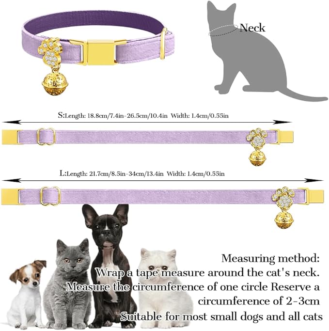 - 2 Adjustable Sizes for Cats & Small Dogs--S: 7.4''-10.4'' and L: 8.5''-13.4''. For Perfect Fit, Please Measure Your Pet's Neck or Current Collar Before Ordering. Manual Measurement Exists 0.5"-1" Error.