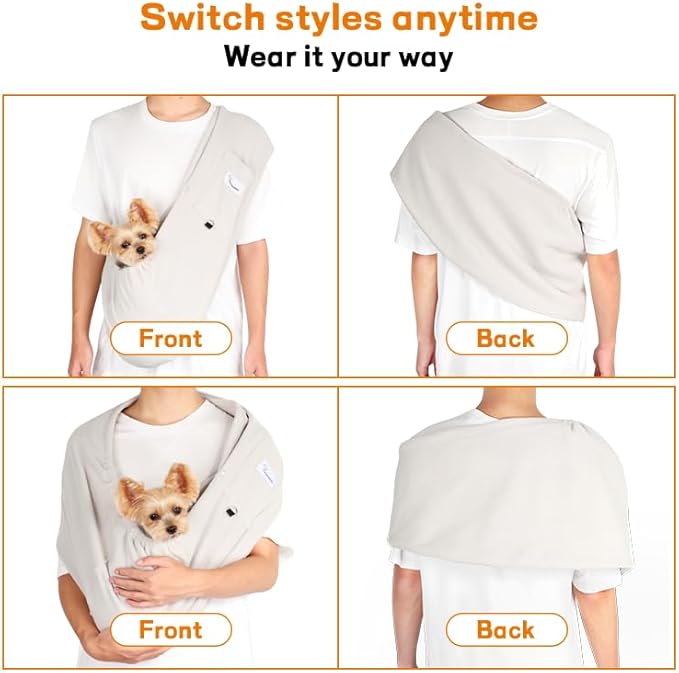 Dog Sling Carrier for Cats and Small Dogs – Hands Free Pet Sling with Adjustable Safety Strap & Buckle, Soft Cat Sling Carrier for Snuggling, Portable Dog Carrier Sling (Large, Grey)
