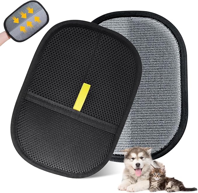 Pet Hair Removal Glove,Reusable Magic Brush Pet Hair Remover Tool for Cats & Dogs,Newly Upgraded Pet Grooming Gloves for Laundry, Carpet, Couch,Car Seat (Black)