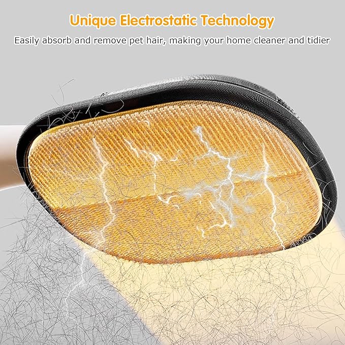 - 【 Electrostatic adsorption, Easy hair removal without Leaving Marks 】 Utilizing electrostatic technology, this pet hair remover glove can instantly adsorb down, pet hair and dust with just a gentle slide. No need for repeated rolling or strenuous cleaning, making cleaning simple, fast and thorough.