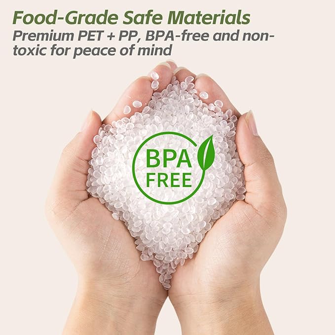 - 【Food-Grade Safe Materials】 – Made of premium food-grade PET and PP plastic. BPA-free, non-toxic, impact-resistant and durable, ensuring every sip is clean and safe.