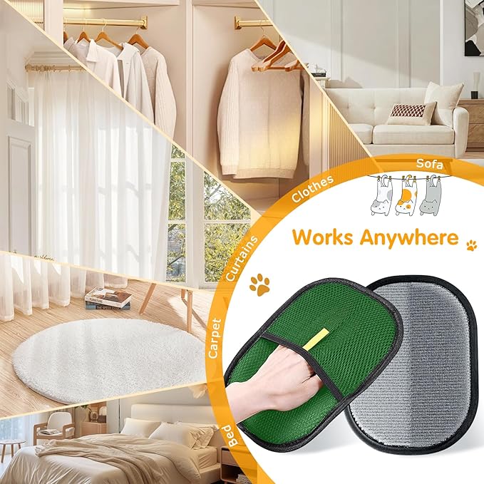 - 【 Electrostatic adsorption, Easy hair removal without Leaving Marks 】 Utilizing electrostatic technology, this pet hair remover glove can instantly adsorb down, pet hair and dust with just a gentle slide. No need for repeated rolling or strenuous cleaning, making cleaning simple, fast and thorough.
