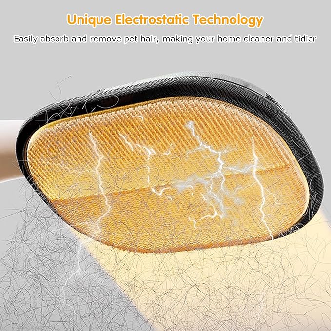 - 【 Electrostatic adsorption, Easy hair removal without Leaving Marks 】 Utilizing electrostatic technology, this pet hair remover glove can instantly adsorb down, pet hair and dust with just a gentle slide. No need for repeated rolling or strenuous cleaning, making cleaning simple, fast and thorough.