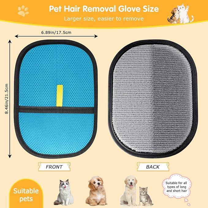 - 【 Washable and reusable, environmentally friendly and cost-effective 】 This pet hair removal glove enables you to bid farewell to the waste of disposable sticky paper and velvet rollers.Our pet hair removal tool features a washable design, allowing you to easily shake off debris or wash it with water. It is durable and long-lasting, making it an ideal choice for you to balance economy and environmental protection.