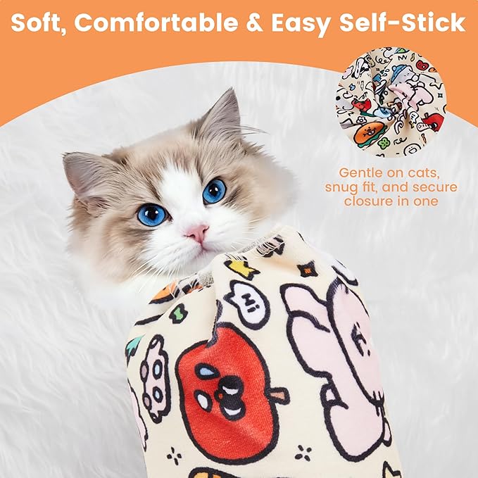 Cat Grooming Wrap – Self-Adhesive Burrito for Stress-Free Nail Trimming, Grooming & Medication – Soft, Machine-Washable, Fits Cats up to 15 lbs