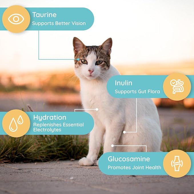 Petralyte Cat Hydration Electrolyte and Cat Joint Supplement | Hydration Support for Cats w/Glucosamine, Chondroitin, L-Glutamine, Taurine, Lysine & Prebiotics | for Chicken Lovers | 32 Packets