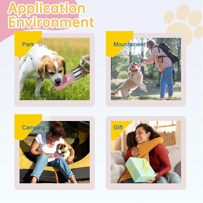 - Best Travel Companion: A portable dog water bottle is a must-have item for pet owners on the go! The unique design is both user-friendly and dog-friendly. It's perfect for long-time drives, road trips, hikes, walks, and outdoor activities.