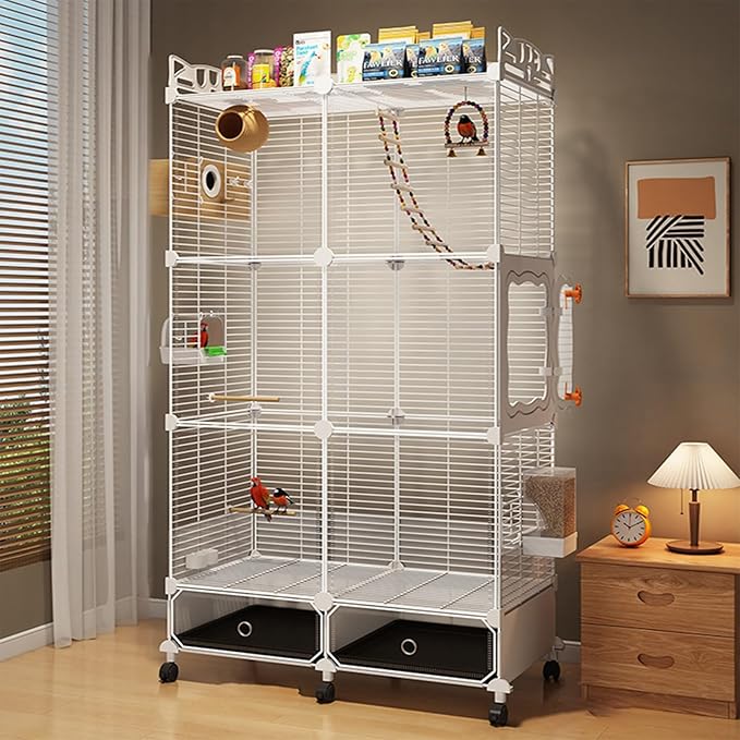 - Convenient Mobile Design: With 6 lockable pulleys on the bottom, this bird cage with wheels makes movement effortless. Whether you’re rearranging the layout or cleaning up, this feature allows you to adapt easily to your daily needs
