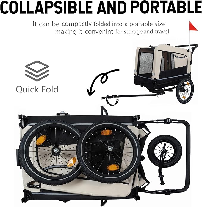 - 4-in-1 Versatile Applications- Functions as: Bicycle trailer, Weather-resistant push cart, Vehicle travel carrier, Indoor/outdoor crateIdeal for cycling, vet visits, travel, or daily use.