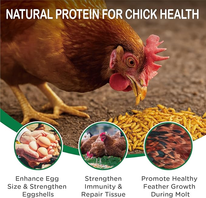 - 100% Natural & Non-GMO – No additives, preservatives, or chemicals. Just pure, farm-raised larvae that ensure a safe, nutritious, and sustainable chicken treats for backyard poultry and wild birds, making them a healthier alternative to mealworms