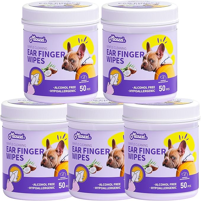 MIOSSZI 250ct Pet Finger Wipes for Dogs & Cats - Dog Ear Cleaner for Itch Relief Remove Wax & Odor, Dog Ear Cleaning Finger Wipes-Pet Ear Finger Wipes