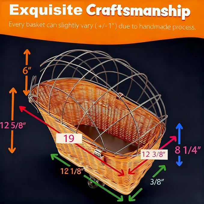 - Pet-Friendly Design: Crafted from premium Polish wicker without harsh chemicals or paints, this natural wicker dog bike basket features a soft cotton pad for plush comfort during rides.We ensure superior quality and attention to detail in every basket