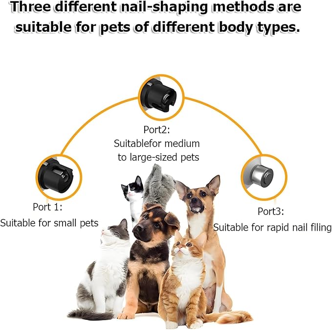 - 【Versatile & Ergonomic Design for All Pets】Lightweight, portable, and comfortable for any hand. Includes multiple grinding ports to safely and effectively groom nails of all sizes and hardnesses, promoting healthier paws by preventing overgrowth issues.