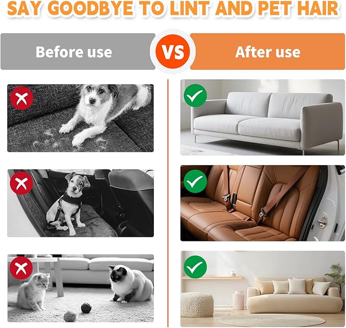 - Strong Static Adsorption for Easy Cleaning – Removes stubborn pet hair, dander, and dust in seconds. The unique static cling technology makes fur collection effortless—just brush back and forth and watch the hair gather.