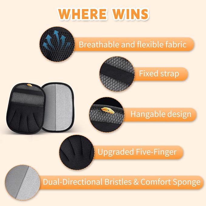 - Eco-Friendly & Washable for Repeated Use – Made with soft, breathable fabric, this reusable grooming glove is gentle on your hands and pets while reducing waste compared to disposable lint rollers. Easy to clean and long-lasting.