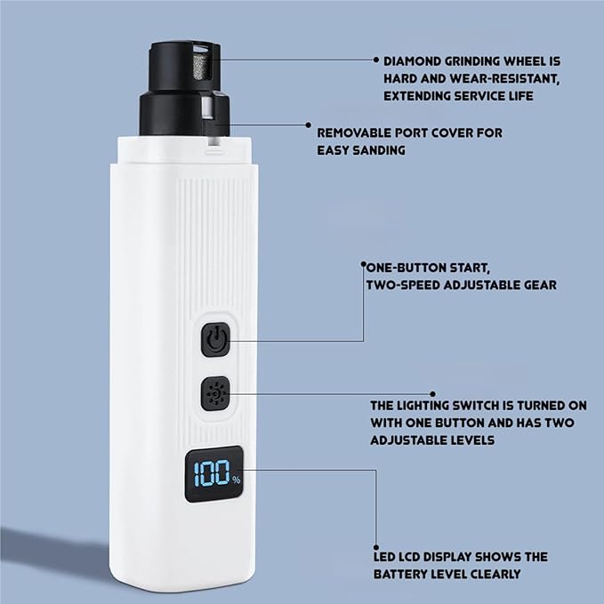 - 【Precision Diamond Grinding & SafeCut Control】 Equipped with a fine diamond-bit grinder, SafeCut trims claws gently yet effectively—without clipping pressure. The dual 360° grinding settings let you shape and smooth nails with salon-grade precision, protecting the quick while keeping every paw soft, clean, and snag-free.